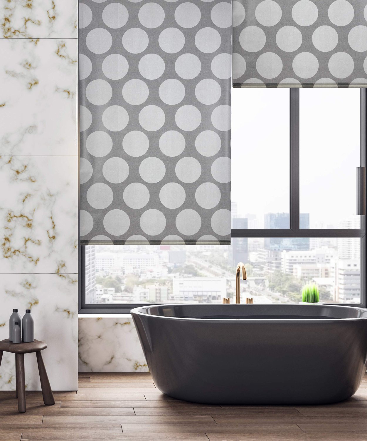 Özellikle küçük banyolar için rulo perdeler harika bir seçimdir. Pencere girintisinin içine tam olarak oturdukları için yer kaplamazlar ve mekana temiz, akıcı bir görünüm katarlar. Diğer kumaş perdelerin aksine, pencere kenarında biriken buhardan veya sudan daha az etkilenirler.