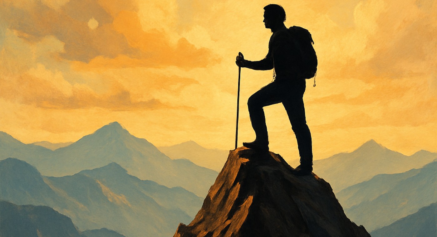 Görsel: kendi-cabasiyla-bir-dagin-zirvesine-tirmanan