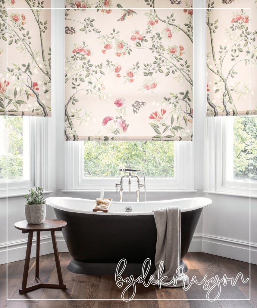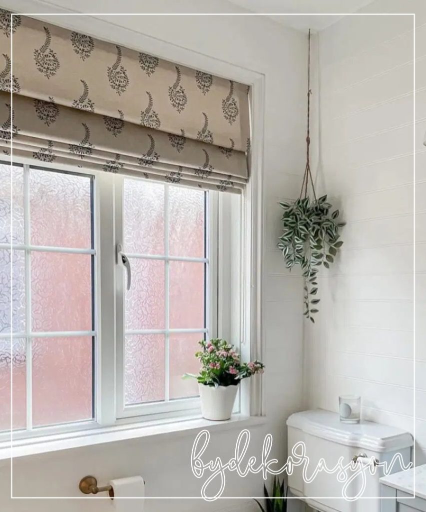 Romen perdeler, banyoya sıcaklık ve zarafet katar. Katlandıkça oluşan yumuşak kıvrımları sayesinde daha dekoratif bir görünüm sağlar. Suya dayanıklı kumaşlar seçildiğinde, özellikle pencere kenarlarında estetikle işlevi ustaca birleştirir.